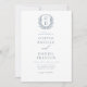 Invitation Dusty Blue Floral Crest Monogramme Mariage QR Code