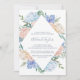 Cette carte d'invitation à la fête bachelorette en diamant bleu poussiéreux est parfaite pour un événement de printemps ou d'été. Le design somptueux présente des pivoines bleu clair disposées avec des fleurs de pêche et de crème dans une magnifique couronne en forme de losange. Cette invitation peut être utilisée pour une fête de bachelorette, une fête de fiançailles, un baby shower ou tout événement !