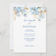 Dusty Blue Floral Gold est une combinaison de couleurs particulièrement jolie et éthérée. Cette version a des guirlandes florales en haut de l'invitation. Rverse à la teinte bleu glacé pâle centré avec le bouquet floral assorti. Les noms du couple en police de calligraphie avec une aquarelle décorative et bleu clair Dusty, feuillage hued champagne beige, faux accent or.