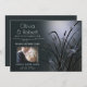 Rustic Nature Photo Fiançailles - Votre photo avec ce thème gris bleu foncé, une douce lueur derrière un joli écran de cattails et d'herbes avec des libellules scintillants brillant dans la lueur - le dos est une couleur de coordination facile à customiser modèle - oeuvre originale de WhimsicalArtwork™ pour la BarefootBride ™. Cela fait partie d'une suite complète de papeterie mariage, ainsi que Baby shower, Anniversaire et Invitations de Christening. Pour toute question ou assistance, veuillez contacter le concepteur indy.designer@yahoo.com.