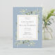 Doté de feuilles d'aquarelle délicate sur un arrière - plan bleu poussiéreux, ce chic faire-part de mariage tout-en-un botanique peut être personnalisé avec toutes vos informations spéciales de mariage sur le contraire, y compris votre RSVP, l'hébergement, et le site mariage QR code. Conçu par Thisisnotme©