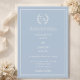 Invitation Dusty blue ivory wreath monogram simple wedding