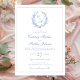 Invitation Dusty Blue Monogram Mariage de couronne botanique