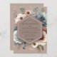 Embrace a timeless romance with this elegant painterly design. A sophisticated palette of dusty blue, soft mauve, and creamy white blossoms is set against a warm, muted taupe background. Delicate watercolor anemones and lush peonies are artfully arranged with sprigs of muted greenery, creating a soft, dreamy aesthetic.