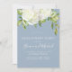 Une élégante invitation à fêter des fiançailles florales avec un bel agencement de fleurs de pivoines blanches aquarelles et de verdure. Montré avec une couleur bleu arrière - plan poussiéreuse qui peut être customisé pour correspondre à votre thème mariage. Il suffit de cliquer sur le bouton "customiser" pour voir d'autres options de conception.