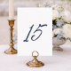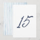 Featuring a hand-drawn navy “15” on a clean white front, this table number combines artistic softness with timeless elegance. The reverse side showcases delicate watercolor French stripes in dusty blue, adding subtle character while maintaining a polished, cohesive look.