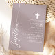 Célébrez l'occasion sacrée d'un baptême avec cette élégante invitation à la lavande pourpre poussiéreuse. Avec son design minimaliste, son écriture moderne et sa croix délicate, cette invitation est parfaite pour inviter amis et famille à participer à cet événement spécial. La couleur douce et les lignes simples et propres ajoutent une touche de sophistication et de grâce, ce qui en fait l'idéal pour une célébration si significative. Customisez les détails pour créer une invitation unique et mémorable pour le baptême de votre enfant.