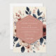 This design features a romantic arrangement of muted rose and deep indigo blooms, accented by delicate branches and leaves. The opulent color palette evokes a sense of vintage elegance and natural beauty, perfect for a sophisticated affair. The rich floral imagery creates a warm and inviting atmosphere.