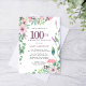Faites honneur à une femme spéciale avec cette invitation élégante et féminine 100e anniversaire. Le 100ème est écrit en gros texte pourpre poussiéreux. La célébration d'anniversaire suit. Le nom de l'invité honoré est également en lettres majuscules bleues. Les détails de la fête d'anniversaire sont entourés de fleurs sauvages de prairie de campagne violet et rose. Les éléments floraux sont nichés dans des feuilles verts et des feuillages. Bien qu'il s'agisse d'un design traditionnel, le feuillage botanique ouvert et aéré et le texte lui donnent une ambiance contemporaine. Cette invitation fait partie de la collection Dusty Pink Purple Fleur sauvage 100th Birthday.