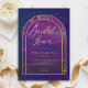 Invitations invités à une douche de mariée mystique et magique avec Celestial Fortune Indigo & Gold Bridal Shower Invitation. Ce modèle d'invitation à la douche nuptiale moderne et élégant est un choix captivant pour la future mariée qui aime un thème céleste, le thème de la lune et des étoiles, ou le thème de la diseuse de fortune. Un magnifique cadre en arc de bouho en or double met en valeur une aquarelle intérieure peinte d'une nuit étoilée, avec une incrustation violette et indigo profonde qui ressemble à des eaux célestes avec des taches lumineuses de lavande et des traces vibrantes de rose et jaune. Ce design présente des éléments célestes complexes : le soleil, la lune, le calice, les constellations et les étoiles scintillantes. Le tout dans une riche palette de couleurs d'indigo violet et d'or (notez que l'or est un effet numérique, pas un vrai papier d'aluminium !), cette invitation mélange parfaitement astrologie, horoscope et vibrations zodiaques. C'est une invitation unique à la douche nuptiale pour une mariée moderne à la recherche d'une douche nuptiale enchantée ou d'un événement céleste boho. Donnez le ton pour une célébration inoubliable remplie d'émerveillement cosmique !