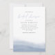 L'élégante invitation à la douche de nuptiale côtière présente un dégradé d'aquarelle bleu clair le long du fond avec une courbe gracieuse qui évoque le reflet et le flux de la mer. Vos détails de douche nuptiale apparaissent en lettrage classique minimaliste avec accents manuscrits.