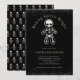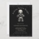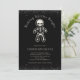 Invitation drôle et gothique pour un échange de biscuits de vacances avec un bonhomme en pain d'épice squelette et la phrase Rendre les esprits de la cuisson lumineux. Il y a une touche de paillettons noirs en haut et en bas également ! Ajoutez les informations de votre fête d'échange de biscuits à l'invitation. Motif de squelette au dos (ou retirez pour un noir uni. Voir les articles coordonnés dans notre boutique, Enchanted Finch.