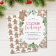 Cette invitation à la fête d'échange de biscuits de Noël est décorée avec des biscuits d'aquarelle, des saints, du faux-pied, des baies et une typographie stylisée. Il y a un motif de biscuits homme en pain d'épices à l'arrière. Facile à personnaliser. Aquarelle originale © Michele Davies.