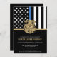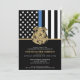Honorer le dévouement et le travail acharné d'un nouvel agent de l'application de la loi avec cette invitation personnalisée à obtenir un diplôme de police. Doté d'un badge de police et d'un drapeau de la police avec des rayures noires et blanches audacieuses et une fière ligne bleue mince, ce dessin symbolise la force, le service et le sacrifice. L’invitation est personnalisée avec le nom du diplômé en lettres d’or, ce qui en fait un souvenir mémorable pour les amis, la famille et les autres officiers. Parfait pour célébrer un diplôme, une promotion ou un jalon dans la carrière d’un officier de police. Invitation vos invités dans le style et montrer le soutien pour le nouveau membre de la communauté mince ligne bleue.