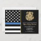 Honorer le dévouement et le travail acharné d'un nouvel agent de l'application de la loi avec cette invitation personnalisée à obtenir un diplôme de police. Doté d'un badge de police et d'un drapeau de la police avec des rayures noires et blanches audacieuses et une fière ligne bleue mince, ce dessin symbolise la force, le service et le sacrifice. L’invitation est personnalisée avec le nom du diplômé en lettres d’or, ce qui en fait un souvenir mémorable pour les amis, la famille et les autres officiers. Parfait pour célébrer un diplôme, une promotion ou un jalon dans la carrière d’un officier de police. Invitation vos invités dans le style et montrer le soutien pour le nouveau membre de la communauté mince ligne bleue.
