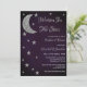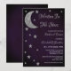Écrit dans la douche nuptiale des étoiles. Lune d'argent et étoiles contre un arrière - plan violet foncé de minuit