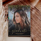 Confetti d'huile d'or chic moderne et cadre frontière script libre de la graduation photo maison ouverte. Ajoutez 4 de vos photos préférées avec une élégante calligraphie script et un collage de grille photo.