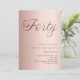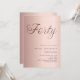 Une invitation design et moderne pour une fête de 40e anniversaire. arrière - plan en or rose dégradé et le mot Quarante écrit avec d'élégantes grandes lettres de script en or rose foncé. Personnalisez et ajoutez un nom et des détails du parti.