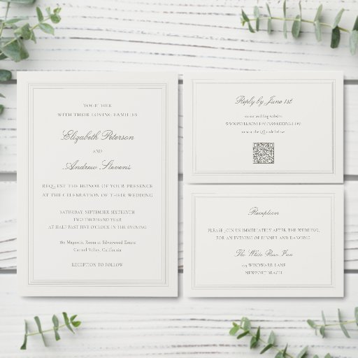 Invitation Ecru Formal Romance Classic Triple Frame Wedding