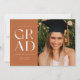 Célébrez votre diplôme en style avec cette faire-part moderne de graduation et l'invitation. Il comporte le mot GRAD dans élégant sans serif sur un arrière - plan couleur terre cuite à l'avant, ainsi que l'espace pour une photo. L'arrière de l'invitation a de l'espace pour une deuxième photo ainsi que de la place pour tous les détails de votre fête de remise des diplômes.