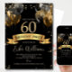 Invitation Editable 60th Birthday Invitation: Black & Gold Ba