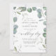 Faire-part de mariage à thème rustique élégant et classe aquarelle sauge vert et bleu poussiéreux jardin botanique avec un script de calligraphie moderne chic.
