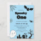 Carte d'invitation d'Halloween pour une fille comprenant des dessins d'un fantôme, d'une araignée, d'une chauve-souris et des bougies. avec le texte "Éffrayant One."