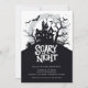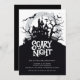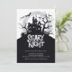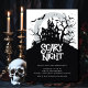 Cette invitation hantante présente un design noir et blanc avec une maison hantée, des chauves-souris volantes, et la nuit angoissante du dicton. C'est la meilleure façon d'ajouter une touche de fantaisie d'Halloween à votre fête et de faire savoir à vos invités qu'ils sont dans pour un bon moment de frayeur.
