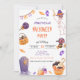 Célébrez l'Halloween dans le style avec cette invitation amusante et festive avec des citrouilles, des bonbons, des squelettes et des décorations éffrayantes. Parfait pour les fêtes d'enfants, les événements costumés ou toute fête d'Halloween ! Customisez avec vos détails et donnez le ton pour une nuit pleine de friandises et de plaisir éffrayant.