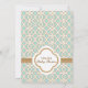 Belles invitations à la douche bébé marocaine d'inspiration française avec un bleu coquillage d'oeuf, un aqua pâle, un motif turquoise vert bleu clair et un géométrique or et des fleurs dorées. Ce invitation haut de gamme et luxueux est parfait pour tous les baby showers à thème formel, exotique, marocain, arabe ou aladin. L'arrière de ces invitations d'encadrements personnalisés et sophistiqués peut être personnalisé avec le prénom de la maman à être et le nom de l'événement sur la forme de la feuille de carrelage et la conception imprimée de l'apparence du ruban. Artisanat et design © Chrissy H. Studios, LLC.Tous droits réservés.