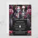 Imaginez l'élégance éthérée de votre mariage à thème gothique capturée dans une seule et unique invitation frappante. Ce design imprimable personnalisable de 5 x 7 pouces présente un tableau époustouflant de romantisme et de mystère, parfait pour définir l'humeur de vos nuptiaux à venir. **Conception avant : *** Au centre de cette invitation, vous trouverez une magnifique représentation hantante d'une mariée et d'un marié en squelette, debout à côté de l'autel. La mariée, avec son cadre squelettique délicat, porte un voile de tulle clair et fluide qui se jette doucement autour de ses épaules, créant un effet halo doux. Son voile est orné d'une dentelle complexe et de petits roses, tandis que le marié, tout aussi captivant, est revêtu d'un tuxedo noir classique qui complète le thème gothique. Sa tenue est ponctuée d'une étonnante boutonnière rose rouge et noir bordeaux, faisant écho aux ornements floraux de la mariée. Leurs os squelettiques sont rendus en blanc croustillant, créant un contraste spectaculaire contre l'arrière - plan noir profond et gris charbon de bois de l'invitation. Cette toile de fond est richement texturée avec un shimmer subtil, où de doux rideaux gris argenté pendent gracieusement des rafteurs de cathédrale, jetant une douce et enchanteresse lueur. De petits groupes de roses roses pâles, rouges de vin et bordeaux placés stratégiquement à travers l'arrière - plan rehaussent l'illusion d'une soirée gothique étoilée, créant une atmosphère onirique et romantique. Les rideaux chatoyants et les tons foncés et veloutés de la cathédrale enrichissent la profondeur visuelle de la scène. **Zones de texte : *** Le devant et l'arrière de l'invitation comportent des modèles de texte personnalisés, élégamment encadrés pour s'intégrer harmonieusement à l'oeuvre. Les zones de texte sont conçues pour présenter vos détails personnalisés avec raffinement. Que vous choisissiez un script classique ou des polices modernes, le texte personnalisé se démarque magnifiquement dans un cadre enchanteur. Cette invitation est plus qu'un simple appel à votre mariage - c'est une oeuvre d'art qui reflète parfaitement l'essence de l'amour et de la grandeur gothiques. Avec ses détails complexes et sa finition luxueuse, il saura enchanter vos invités et donner le ton à un mariage aussi inoubliable qu'unique.