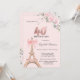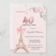 Invitation Eiffel Tower Pink Bow Flowers 40th Birthday