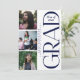 This modern graduation invitation features a bold and stylish layout with a navy blue and white color palette. The design showcases a large vertical “GRAD” typography element paired with a graduation cap icon and “Class of 2026” detail for a contemporary touch. A multi-photo collage highlights the graduate’s personality with candid and portrait images, while the opposite panel presents event details in a clean, organized format. Perfect for high school or college graduates, this invite blends elegance with a personal, photo-driven design—ideal for a memorable celebration announcement.