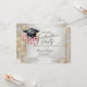 Watercolor floral graduation cap with pink bow, and gold frame on a gray and gold background.