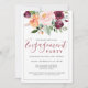 Une invitation charmante à la fête de fiançailles à l'élégance rustique, ce design présente un joli bouquet floral d'aquarelle en roses bordeaux, roses et oranges rougeâtres avec une verdure. L'appariement de texte utilisé dans cette conception associe des faces de type serif élégantes à une face de type script manuscrite moderne. Personnalisez le modèle de texte avec les détails de votre événement.