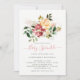 Ces adorables invitations à l'arrosage de bébé présentent de magnifiques fleurs d'aquarelle dans des tons riches de marsala, jaune doré, vert profond et rose roux. Art floral via www.createthecut.com.