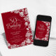 Invitation Élégant 50e anniversaire Roses d'argent rouge