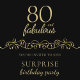Elégant 80 et Fabulous Ornament Surprise 80e Anniversaire Carte. 80 et texte fabuleux en écriture dorée tendance et un ornement élégant sur arrière - plan noir. Personnalisez l'invitation.