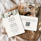 Célébrez votre amour au milieu de la magie de la saison hivernale avec cet élégant faire-part de mariage photo à feuillage persistant. Une mise en page raffinée met en évidence votre photo en même temps qu'un code QR pratique pour un accès facile au site Web RSVP ou mariage. Avec des tons à feuillage persistant naturels et une typographie intemporelle, ce design équilibre harmonieusement chaleur et sophistication - parfait pour les mariages d'hiver dans des cadres élégants, rustiques ou boisés.