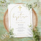 Doté de feuilles de verdure d'aquarelle délicate et d'une élégante arche dorée et crucifix, cette invitation chic au baptême neutre pour les femmes peut être personnalisée avec vos informations spéciales. Conçu par Thisisnotme©