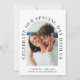 Faire-part de mariage moderne avec votre photo dans un cadre voûté entouré par "Célébrez notre Journée Spéciale avec nous" en typographie élégante. Sous votre photo, ajoutez vos prénoms, votre date de mariage et votre emplacement. Au contraire, personnalisez votre invitation en utilisant une simple typographie et entrez l'adresse de votre site Web mariage pour créer un code QR numérisable pour que vos invités puissent scanner en ligne vers RSVP et obtenir des détails mariages supplémentaires tels que des hébergements.