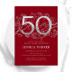 Elégante invitation à la fête du 50e anniversaire en argent rouge. Design féminin moderne et personnalisable avec des accents botaniques rose et de la fausse parties scintillant argent. Carte invitation florale simple parfaite pour une célébration anniversaire élégante. Personnalisez avec vos propres détails. Invitations Zazzle imprimées ou téléchargement instantané modèle imprimable numérique.
