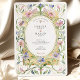 Invite your guests with a masterpiece of Art Nouveau elegance. This stunning wedding invitation features an intricate, hand-painted watercolor border filled with stylized spring flowers in a romantic palette of pink, mauve, lavender, and periwinkle blue. Graceful, swirling vines and leaves are woven through an architectural frame with a warm, antique gold wash, creating a look reminiscent of beautiful stained glass. A sophisticated faux gold oval elegantly frames your wedding details, adding a touch of luxury. Perfect for a spring garden affair, a vintage-themed celebration, or for any couple who appreciates fine art, this invitation sets a truly unforgettable tone.
