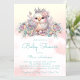 Baby shower de poussins de fille avec poussette douce portant une jolie couronne entourée de perles, papillons et fleurs sur un arrière - plan pastel. Ajoutez simplement vos détails. Vous pouvez modifier la couleur jaune arrière - plan sur l'avant et l'arrière.