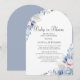 Invitation minimaliste Baby shower d'art floral Boho en fleurs en bleu et blanc