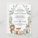 Célébrez l'arrivée prochaine de votre bébé/fille douce avec cette invitation fantaisiste de baby shower neutre sur le thème du bois. Le design comprend de belles fleurs d'aquarelle peintes à la main et un groupe d'adorables animaux de la forêt.