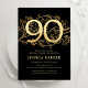 Elégante invitation à la fête du 90e anniversaire en or noir. Design féminin moderne et personnalisable avec des accents botaniques rose et de l'or de parties scintillant faux. Carte invitation florale simple parfaite pour une célébration anniversaire élégante. Personnalisez avec vos propres détails. Invitations Zazzle imprimées ou téléchargement instantané modèle imprimable numérique.
