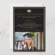 Célébrez votre jalon avec cette élégante invitation de graduation en noir et or avec votre photo sur le devant avec élégante calligraphie. Le dos comprend un message personnel, des détails de l'événement et une photo supplémentaire encadrée d'accents dorés. Parfait pour les diplômés du secondaire ou du collège à la recherche d'un faire-part sophistiqué.