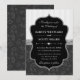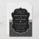 This formal wedding design features a refined mix of vertical grayscale stripes and soft floral textures, anchored by a black ornate frame and a sparkling jewel accent. The layout is symmetrical and sophisticated, with white text and silver detailing that evoke timeless elegance. Perfect for black-tie weddings, upscale events, or classic stationery, this design blends romantic charm with polished refinement.