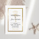 Invitation vos invités pour vous aider à célébrer votre journée spéciale avec cette élégante invitation avec script moderne, texte noir et or y compris un palmier artistique et cadre en feuille d'or métallique sur le devant de la carte. Un arrière - plan blanc est à l'avant et à l'arrière.